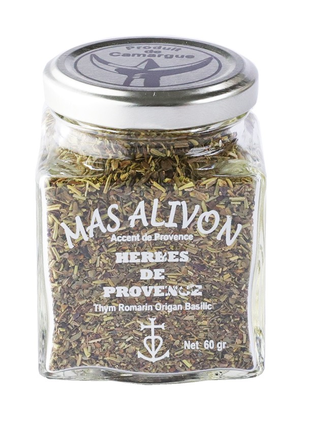 Les herbes de Provence, mélange d’herbes aromatiques Marjolaine, thym, sarriette, romarin et basilic, pour ensoleiller votre cuisine. Nous les présentons en pots, moulins et pochons décorés de motifs provençaux.