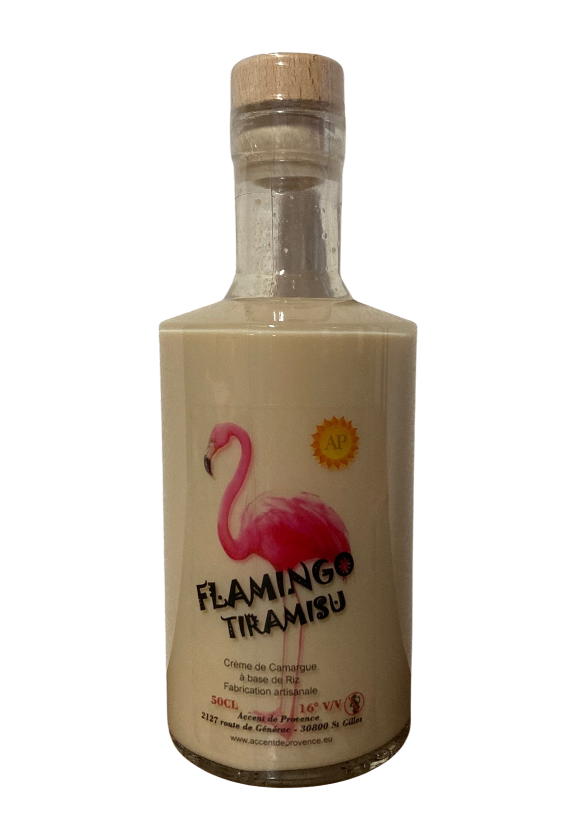 Flamingo, une liqueur crème de Riz à base de Riz, sucre, alcool et eau, 16°, à déguster frais, Le BAILEYS de Camargue, référencé Sud de France