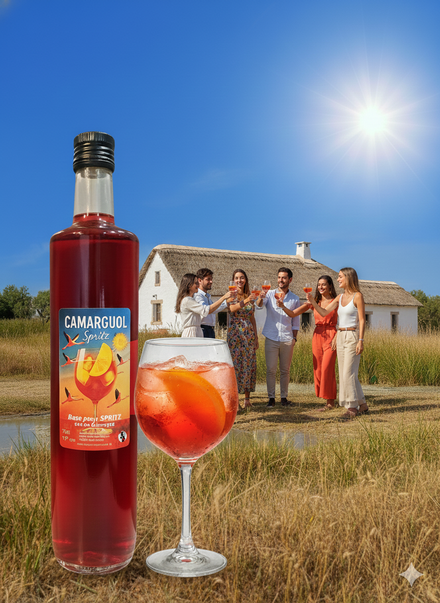 • Un Spritz élaboré en Camargue à partir d’une recette originale héritée de notre arrière grand tante.