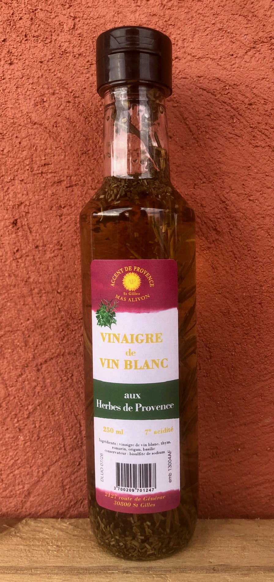 Un vinaigre de vin blanc aux herbes de Provence 25CL pour assaisonner